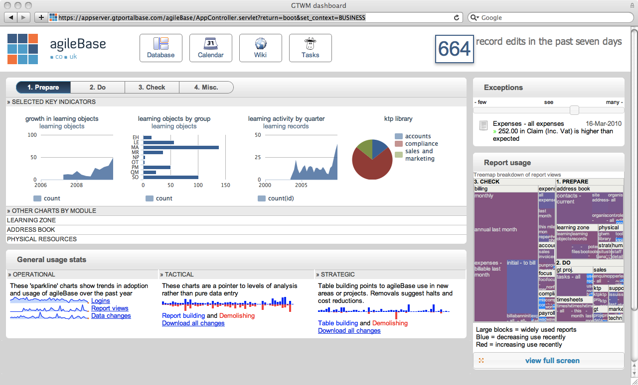 The agileBase dashboard has entered internal beta testing and barring significant problems will be released next month as an add-on. We think this will add a lot of value for executive level staff or anyone who might benefit from a complete overview of the whole system.