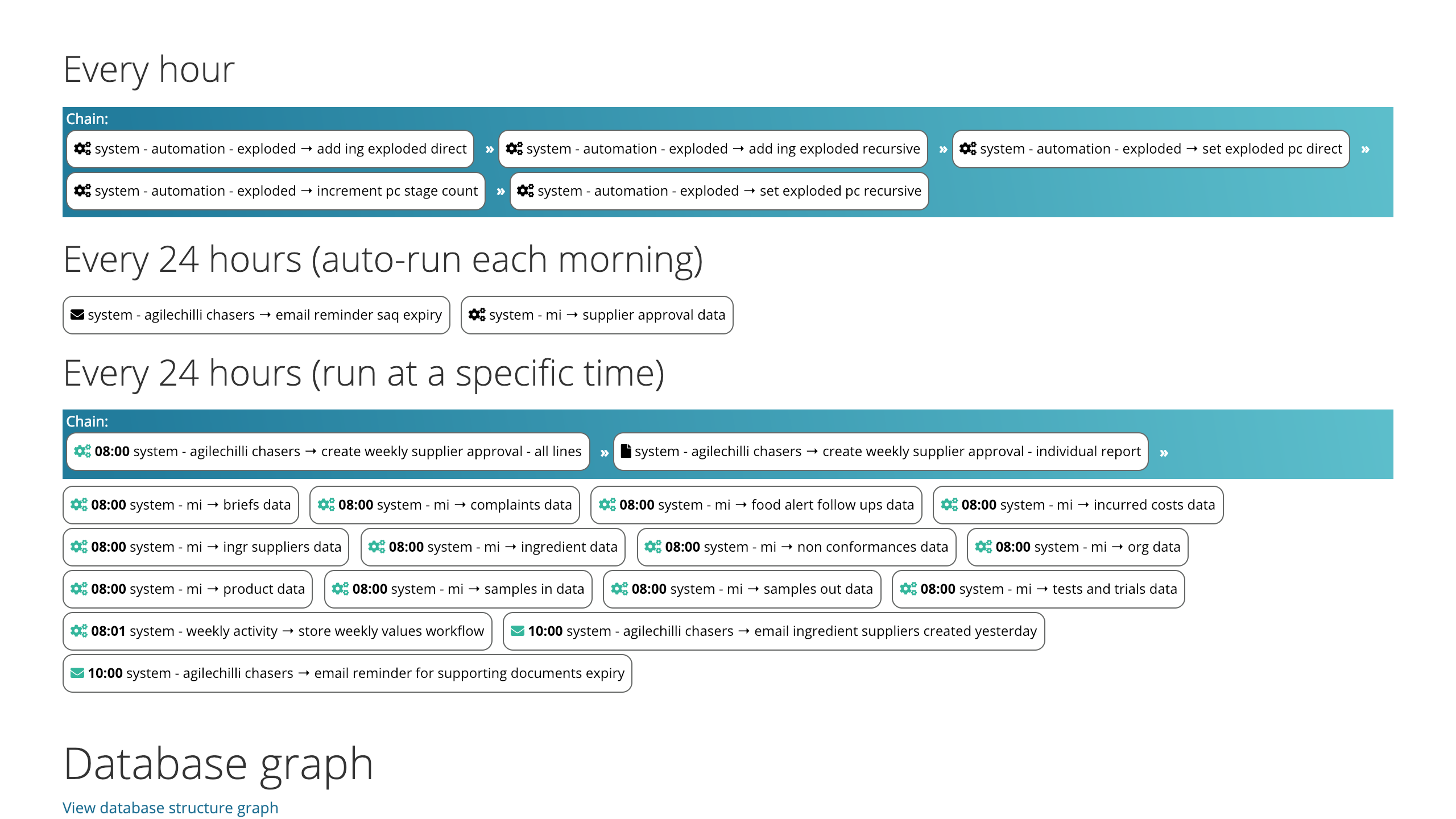 Workflow chains are marked out – that’s when a workflow has multiple linked steps, for example generating an invoice PDF then emailing it to a customer.