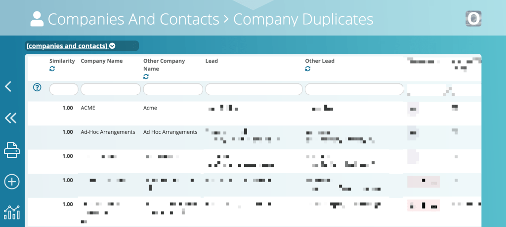 However, even this isn’t going to catch all duplicates. Company names can often be entered slightly differently, e.g. with ‘Ltd’ or ‘Limited’ following the name, the word ‘The’ at the start or with different punctuation.